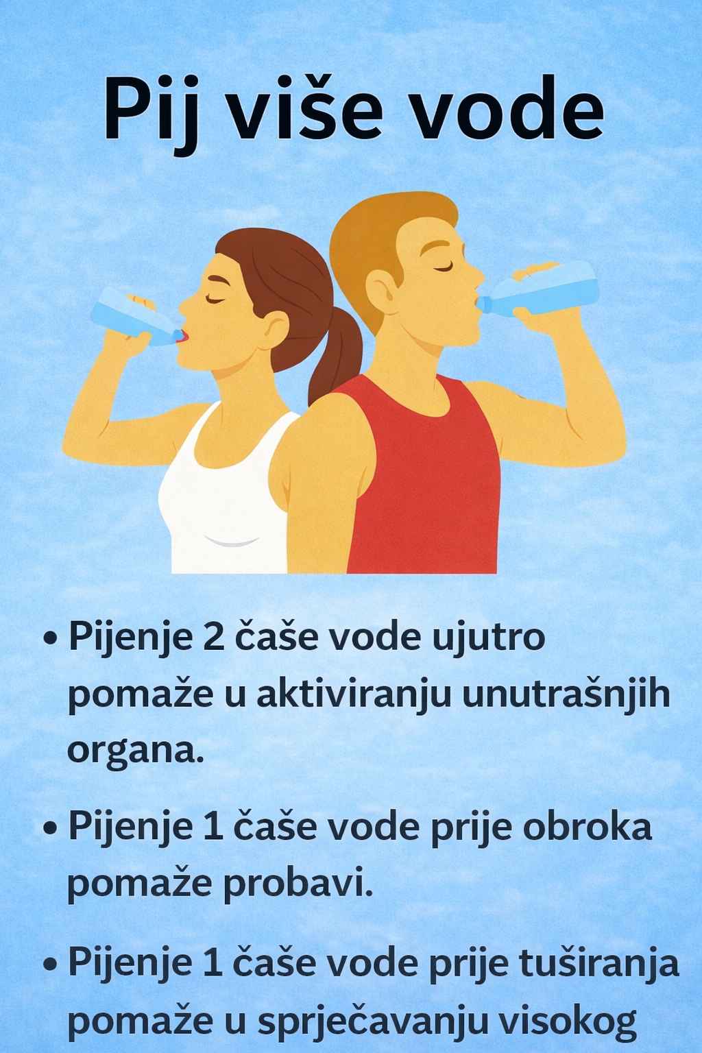 • Čaša vode prije tuširanja može pomoći u regulaciji krvnog pritiska i cirkulacije.