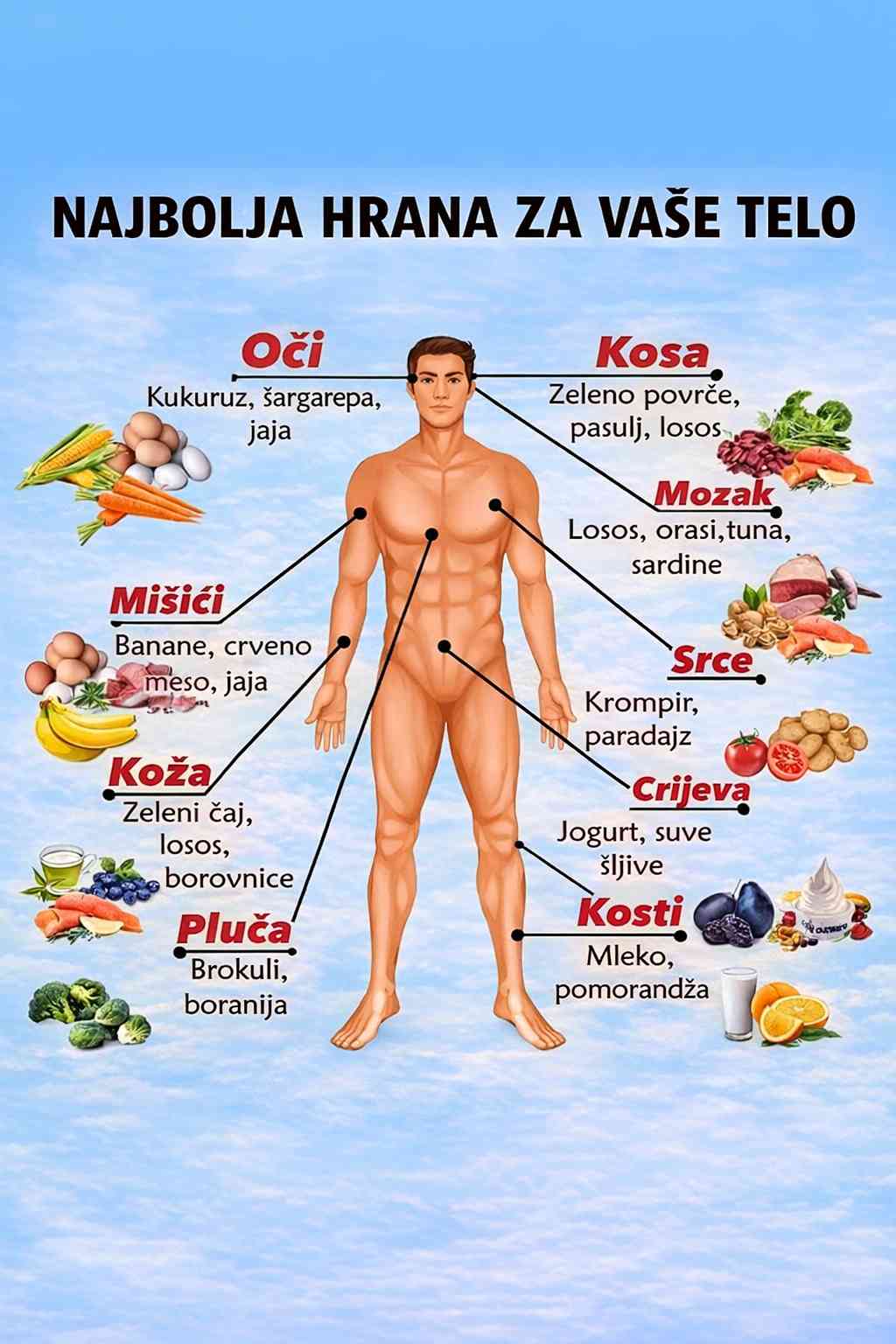 U nastavku je kompletan vodič koji objašnjava kako određene namirnice koriste različitim dijelovima ljudskog tijela.