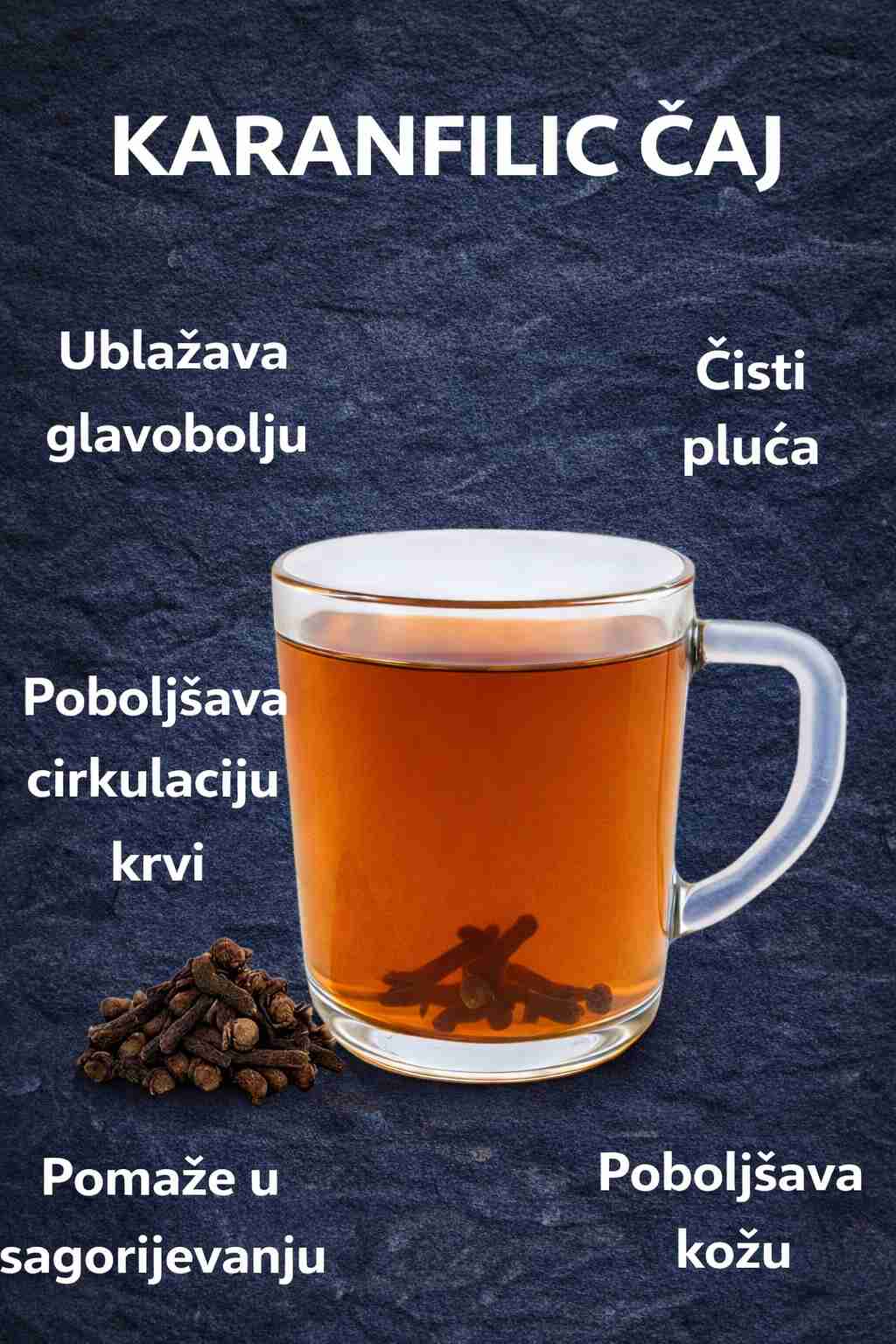 Čaj od karanfilića je jednostavan, ali moćan kućni lijek koji jača tijelo i um. Šolja dnevno može ojačati imunitet i poboljšati opće stanje organizma.