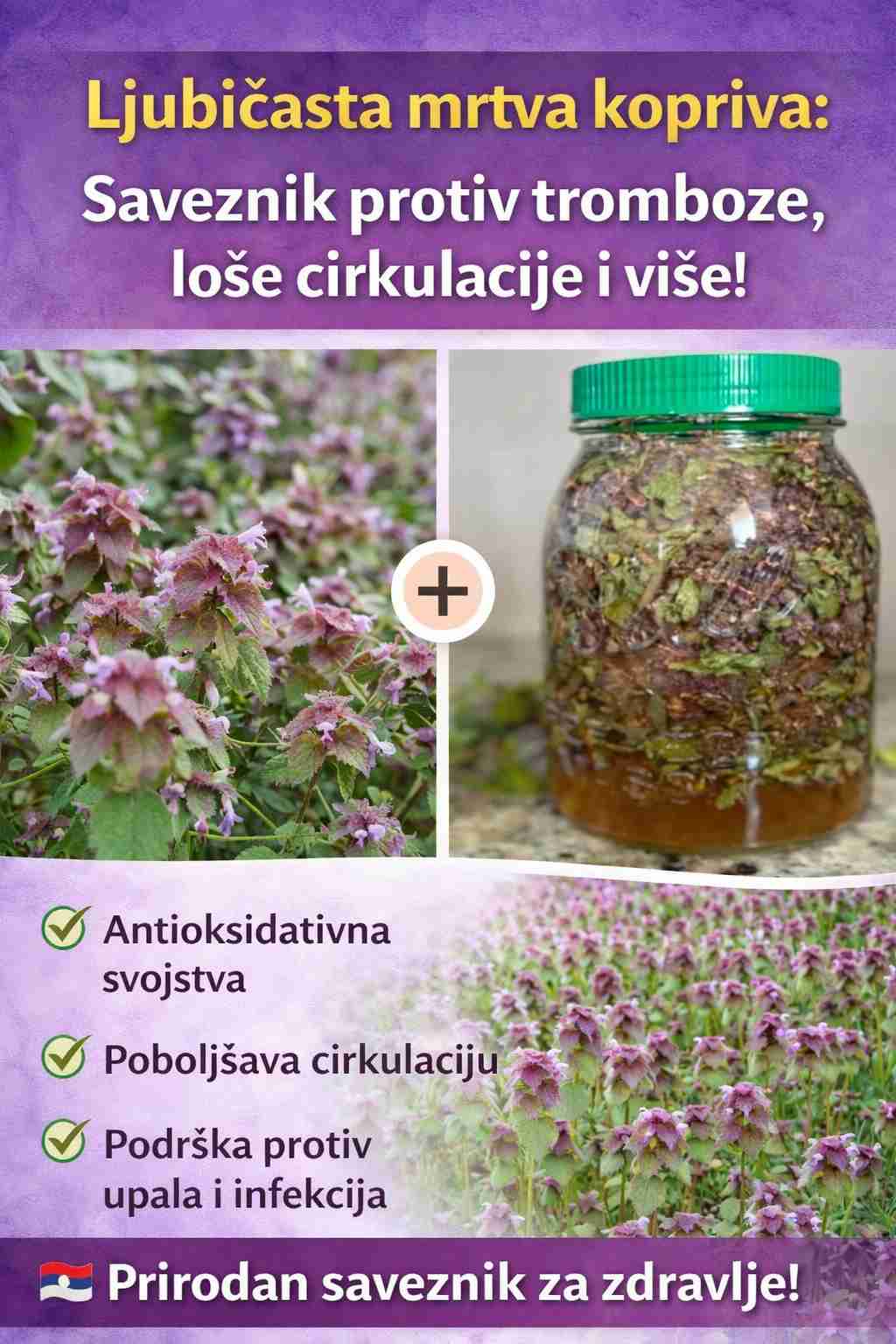 Ljubičasta mrtva kopriva je često zanemarena biljka koju mnogi smatraju običnim korovom. Međutim, ova divlja biljka nosi snažna ljekovita svojstva – naročito kada je riječ o zdravlju srca i krvotoka. Njeni listovi i cvjetići su puni korisnih spojeva koji pomažu u poboljšanju cirkulacije, jačanju krvnih sudova i balansiranju krvnog pritiska. U nastavku saznajte kako da je koristite i zašto bi trebala biti dio vaše prirodne apoteke.