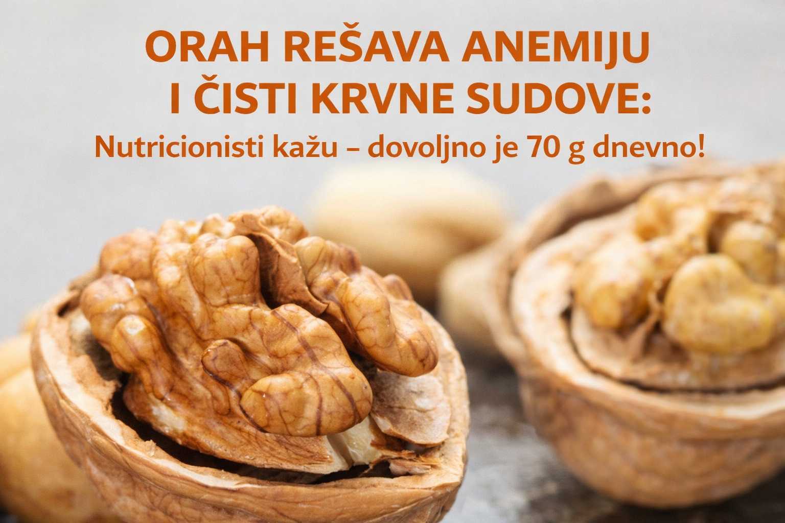 Anemija je često uzrokovana nedostatkom gvožđa. Orah sadrži gvožđe i druge hranljive materije koje podržavaju stvaranje crvenih krvnih zrnaca. Iako sam po sebi nije lijek, može biti dobar dodatak uravnoteženoj ishrani.