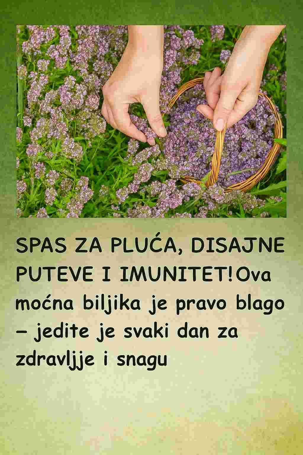 Pluća i disajni putevi najviše trpe uslijed zagađenog zraka i drugih vanjskih faktora, a imunitet nam često slabi prije nego što to primijetimo. U ovoj situaciji, sve više ljudi ponovo otkriva ljekovito bilje i prirodne lijekove koji su već dugi niz godina poznati po svojim ljekovitim svojstvima. Jedna takva biljka, koja je neizostavan dio mnogih kuhinja, a poznata je po svojoj ljekovitosti, jeste majčina dušica. Mnogi je koriste isključivo kao začin, ali ona je mnogo više od toga – pravi je čuvar zdravlja, koji posebno pomaže u očuvanju zdravlja pluća, disajnih puteva i jačanju imuniteta.