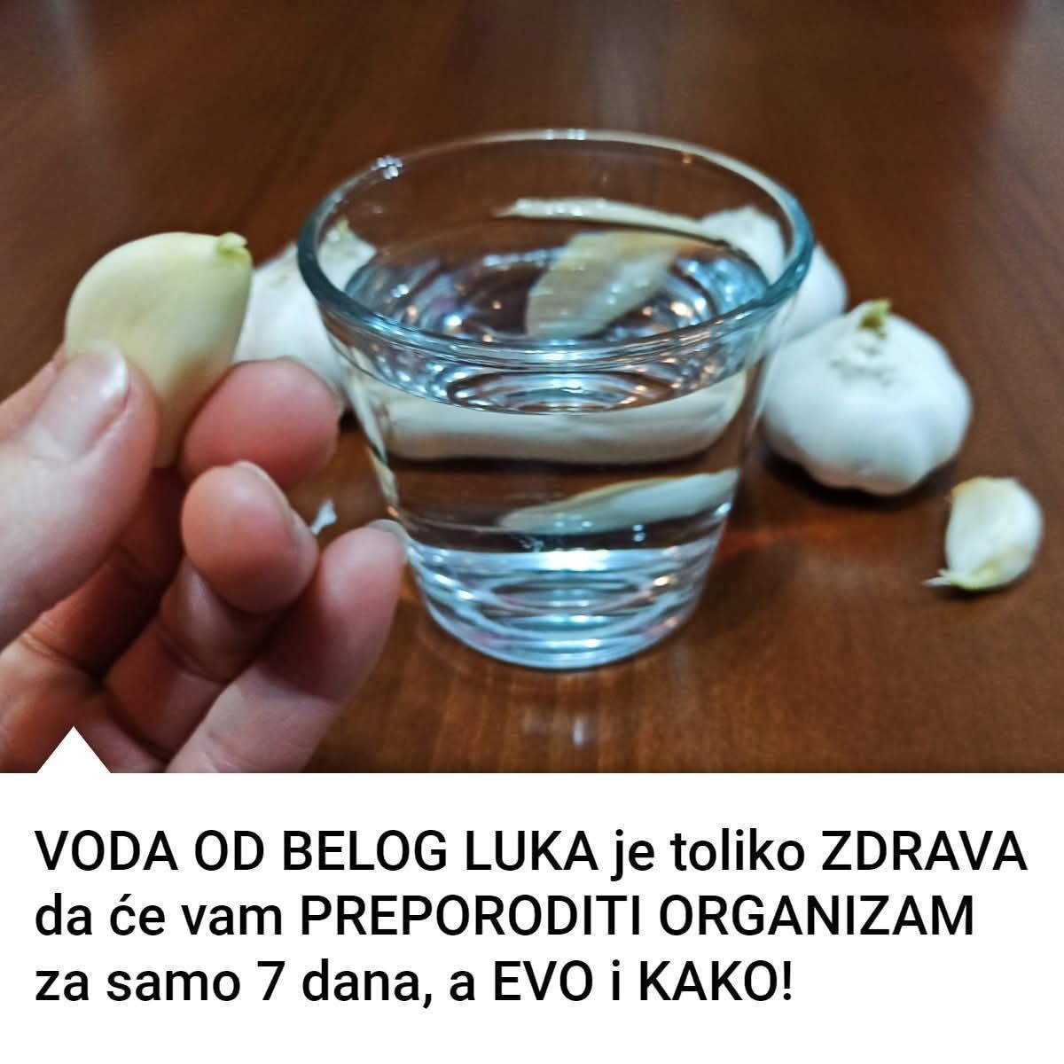 Beli luk očistite i prepolovite svaki čen. Isperite čen ispod mlaza vode, a zatim ga stavite u teglu. Nalijte litar vode i zatvorite teglu. Ostavite je u frižider na sat vremena pre upotrebe.