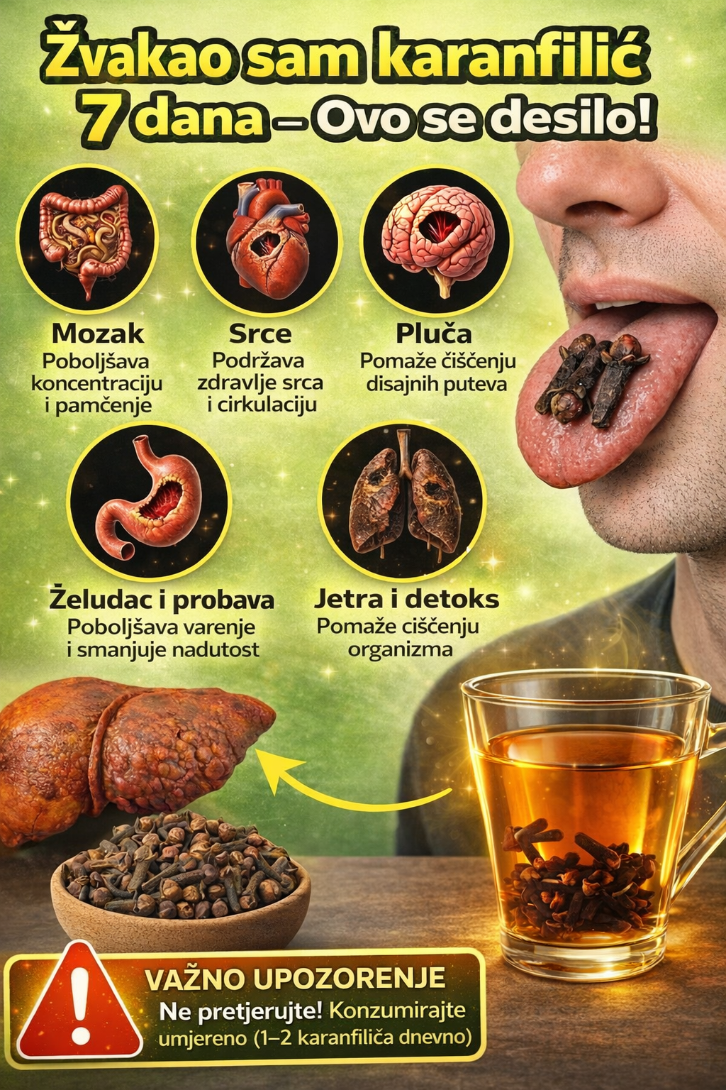 Upozorenje na preokret: Dok klinčić isporučuje eugenol i aromu, 60-70% transformacije dolazi od samog čina – ponovnog treniranja jezika nervnog sistema nakon godina zanemarivanja.